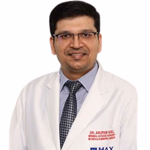 Dr. Anupam Goel is an accomplished Minimal Access and Bariatric Surgeon with specialized post-doctoral training from the prestigious Sir Ganga Ram Hospital, New Delhi. He secured Rank 1 in the All India FNB Entrance Exam, reflecting his academic excellence and surgical expertise. Dr. Goel has been actively involved as faculty in national MAS forums and has presented at major international conferences. His strengths lie in advanced laparoscopic hernia repairs, bariatric surgery, and complex abdominal wall reconstruction.