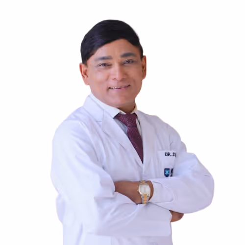 With over 25 years of orthopaedic experience, Dr. Sujoy Bhattacharjee has performed more than 25,000 joint replacement surgeries, including 5,000+ cruciate retaining robotic surgeries. He has set world records such as the first cruciate retaining knee replacement with active robot and operated on a 104-year-old hip patient, earning a place in the Limca Book of Records. He is a regular international faculty speaker and has pioneered the MISSO Robotic System Centre of Excellence.